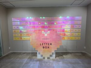 正面には、ファンレター入れが鎮座しています。デジタル全盛の時代にあえて「手書きの手紙」を託す場所がある。それは、私たちの想いが一方通行ではないことを教えてくれる、優しい仕掛けです。